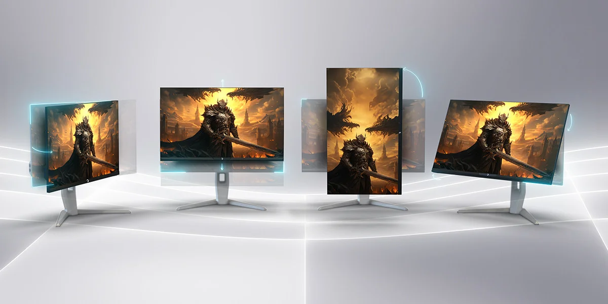 Monitörün yüksekliğini, dönme, eğme ve pivot ayarlarını kişisel konforunuza göre kolayca ayarlayarak deneyiminizi yükseltin.