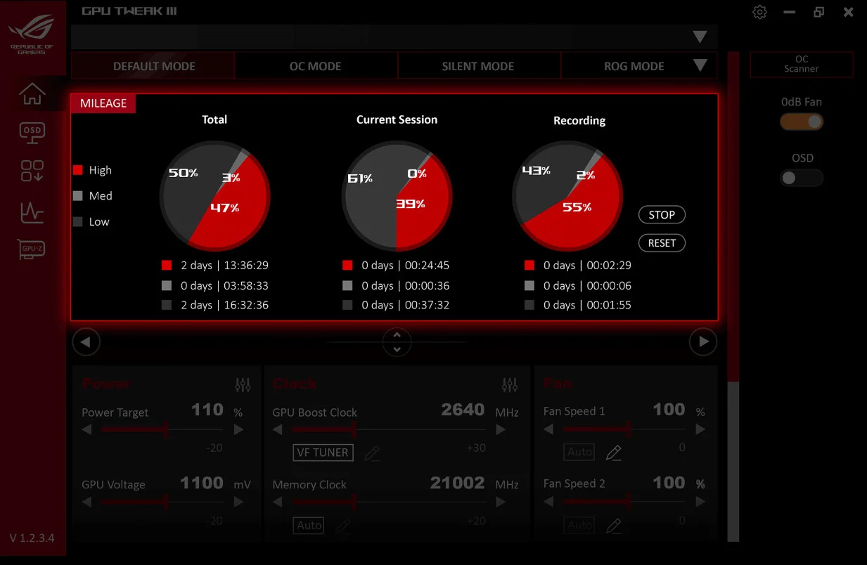 Mileage özelliği, farklı güç seviyelerindeki kullanımı takip eder. Bu sayede birden fazla oyun oturumunda kullanılan yük takip edilebilir.