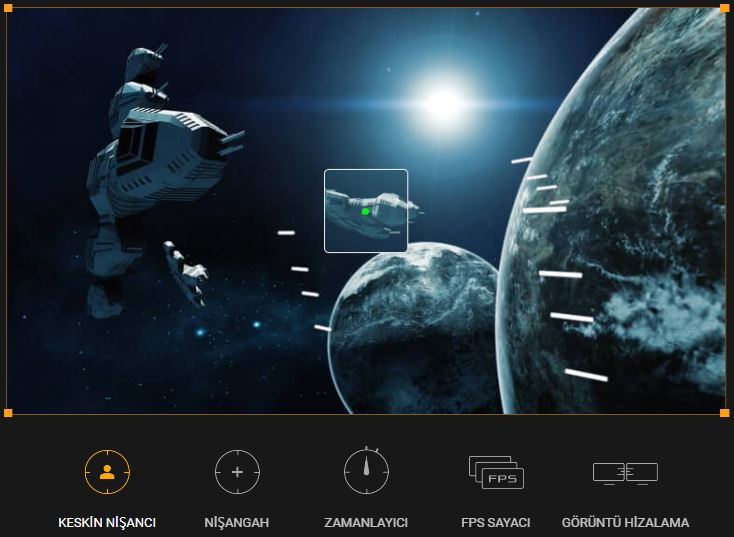 Nişangah rengini otomatik olarak arka planla kontrast oluşturan bir renge ayarlar, bu sayede daha hassas nişan almak için sürekli ön planda olur.