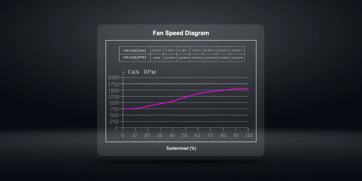 Optimum soğutma sağlayan ve gürültüyü azaltan 140 mm FDB fan ile donatılmıştır. Hız, ısı dağılımına veya sessiz duruma geçmek için yüke göre otomatik ayarlanır. Düşük Gürültü.