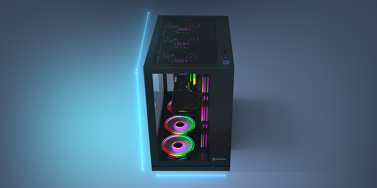 Genişlikten uzunluğa dengeli bir tasarıma sahip WARCRY Evo ile en zorlayıcı oyunlarda ihtiyacın olan GeForce RTX 4090 veya Radeon RX 7900 XTX ile tam uyumluluğa sahip ol.