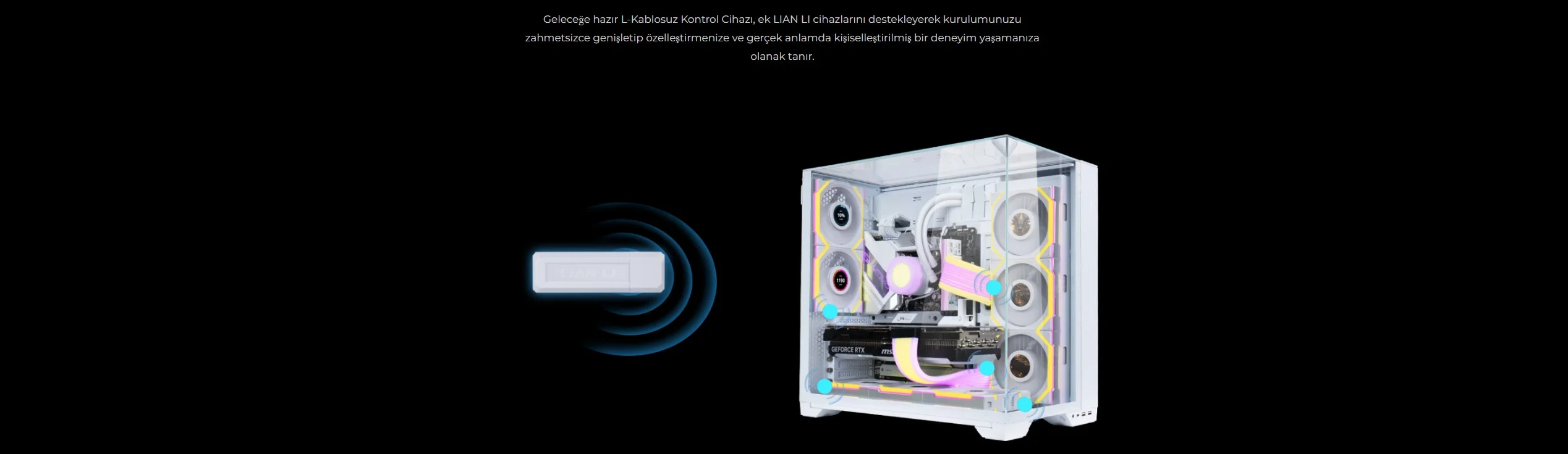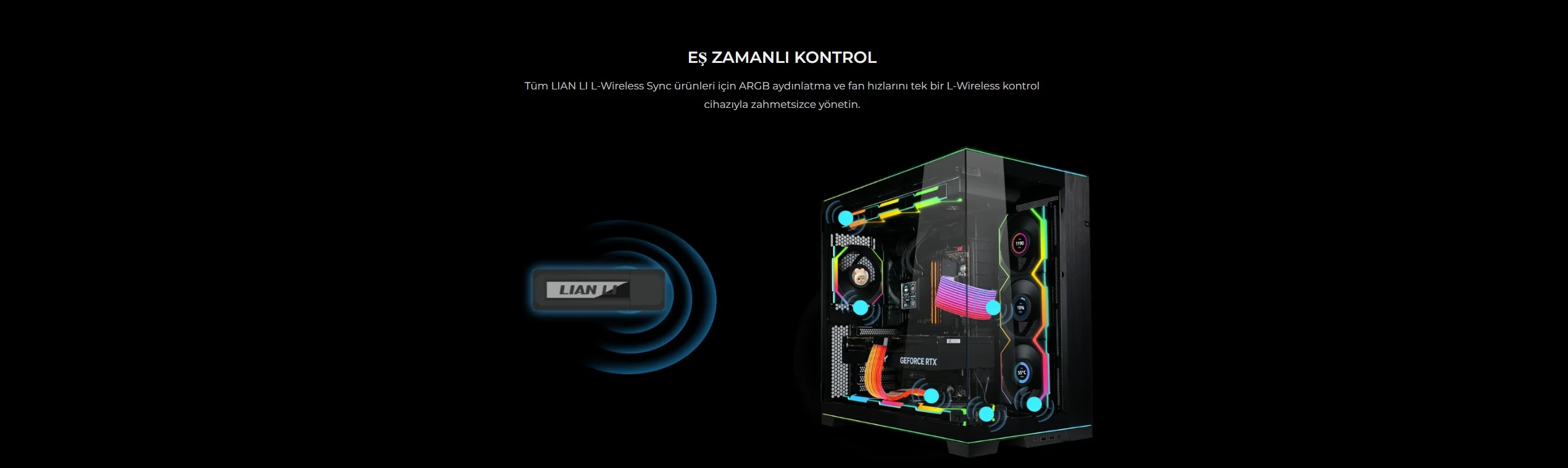 Tüm LIAN LI L-Wireless Sync ürünleri için ARGB aydınlatma ve fan hızlarını tek bir L-Wireless kontrol cihazıyla zahmetsizce yönetin.