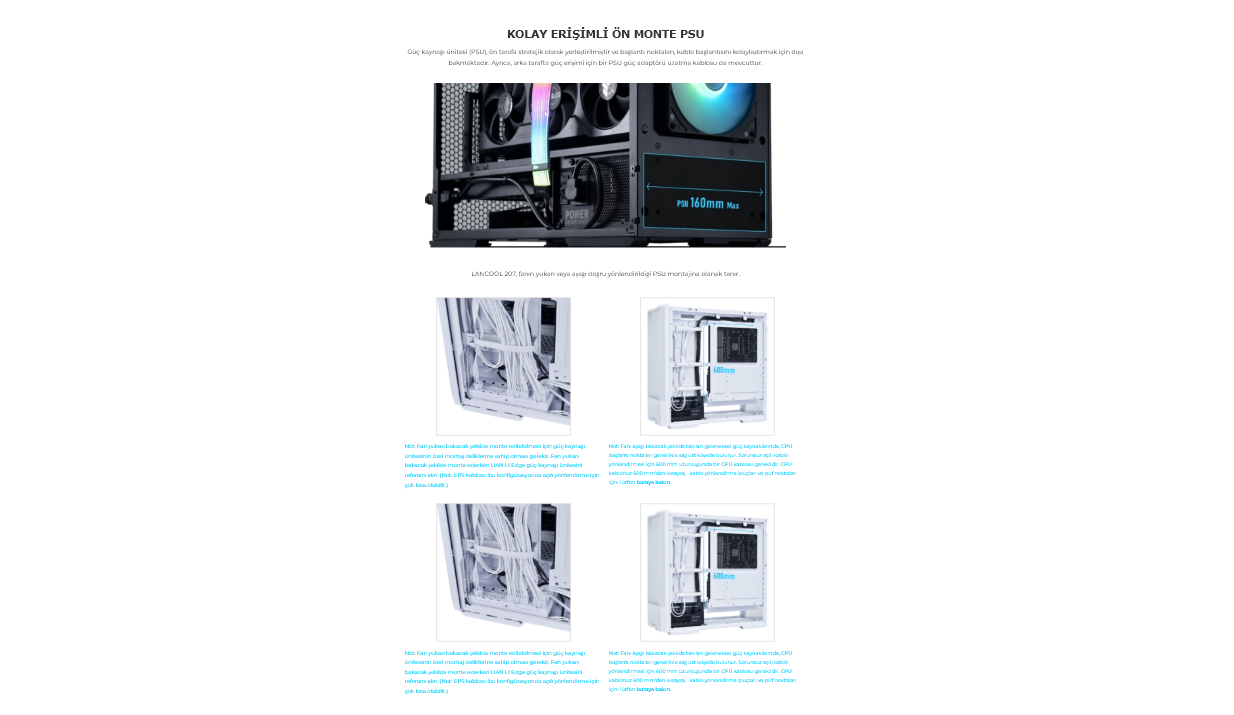 | Güç Kaynağı Konumu | Önde |