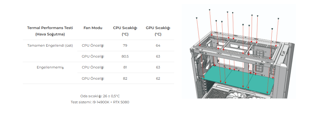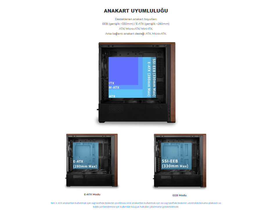 Desteklenen anakart boyutları:EEB (genişlik <330mm) / E-ATX (genişlik <280mm)