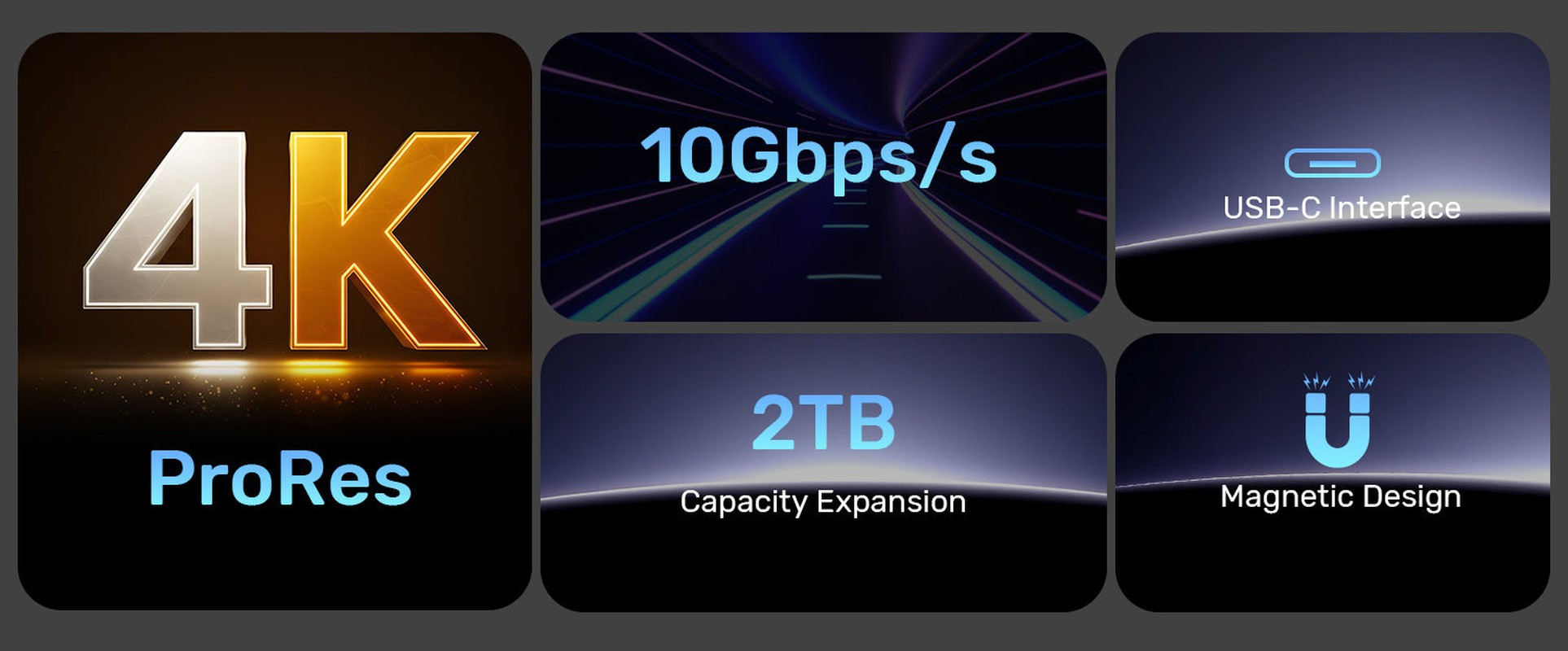 4K ProRes video kaydı, USB-C üzerinden 10Gbps süper hızlı veri aktarımı, 2TB’a kadar genişletilebilir depolama ve kolay taşınabilirlik için manyetik tasarım. Hareket halindeki profesyoneller ve içerik üreticiler için mükemmel!