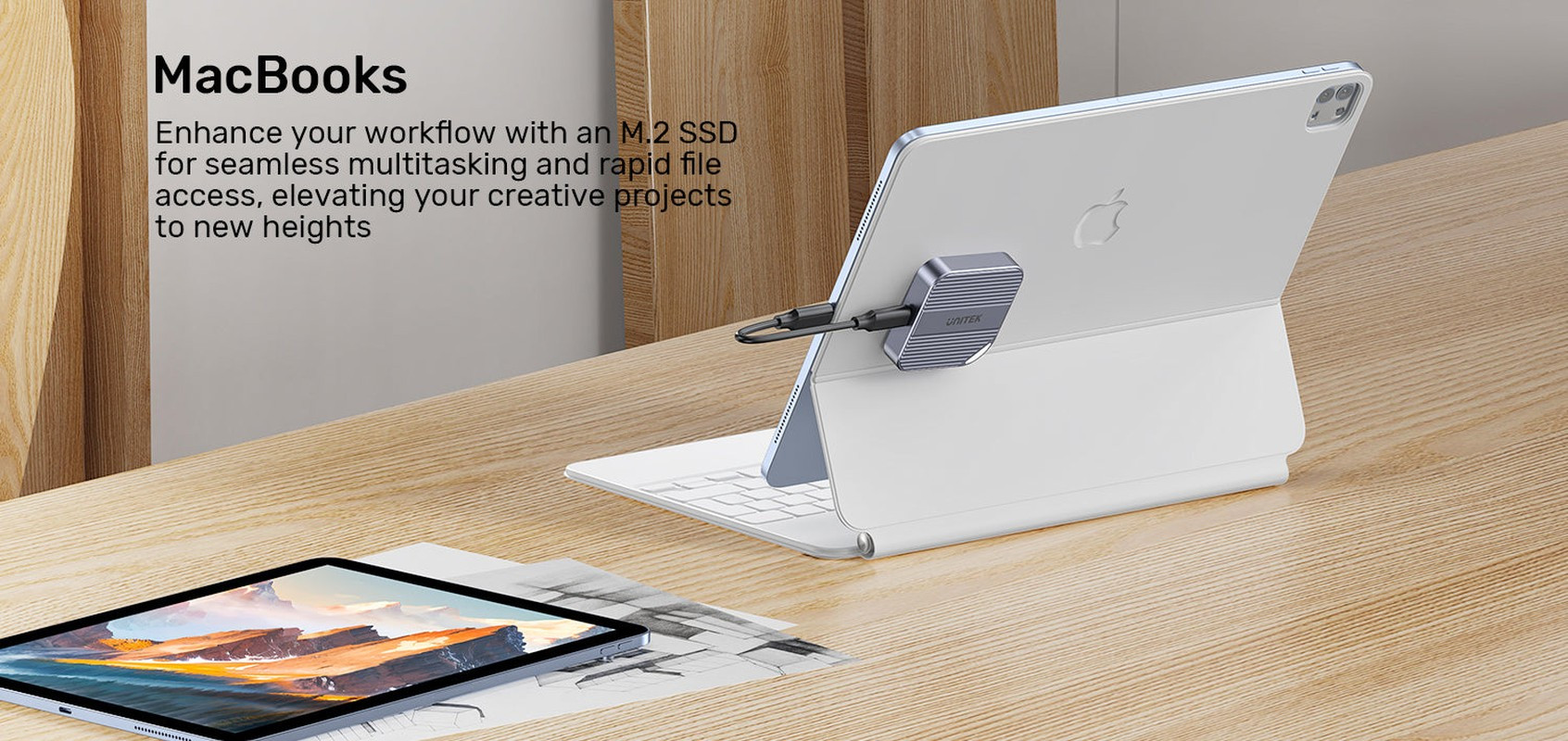 UNITEK Manyetik M.2 2230 NVMe SSD Kutusu, 10Gbps’e kadar veri aktarımını destekleyen USB-C çıkışına sahiptir. Bu sayede büyük dosyaları hızlı ve verimli bir şekilde taşıyabilirsiniz. Yüksek çözünürlüklü videolar ve büyük projeler için idealdir, iş akışınızı kesintisiz tutar.