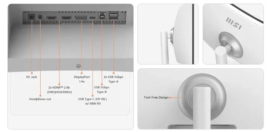 MSI Modern MD342CQPW Gaming Monitör, modern iş ve oyun gereksinimlerine uyum sağlayan zengin bağlantı seçenekleriyle donatılmıştır. 2 adet HDMI 2.0b, DisplayPort 1.4a, USB-C Power Delivery (98W), USB 3.2 Gen 1 Type-A hub ve 3.5mm kulaklık çıkışı, birden fazla cihazı aynı anda bağlamayı mümkün kılar. KVM anahtarı, farklı bilgisayarlar arasında hızlı geçiş imkanı sunarken, kolay montaj için tool-free tasarım avantajı sağlar. Gelişmiş bağlantı altyapısı, hem işlevselliği hem de kullanıcı deneyimini üst seviyeye taşır.İlginizi Çekebilecek Diğer Ürünler