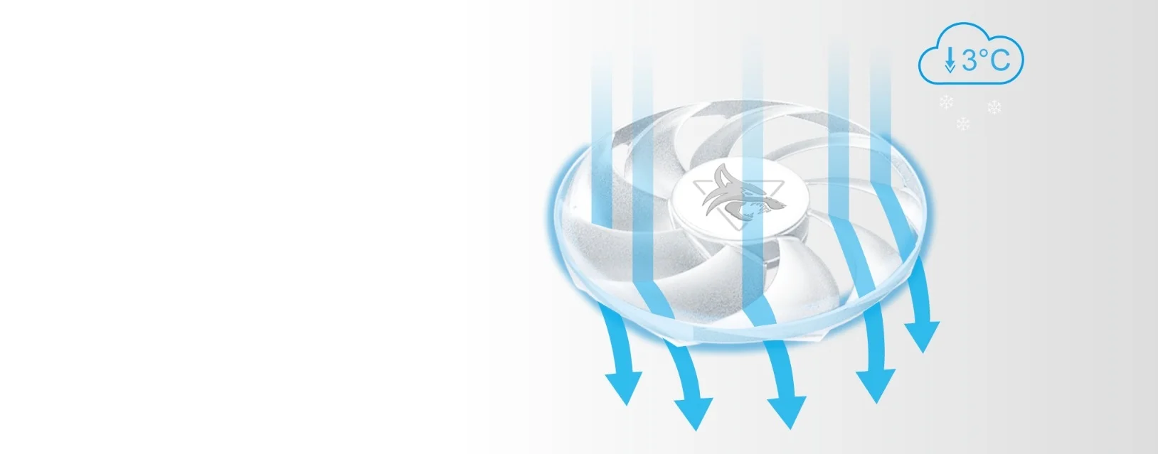Orta fan, hava türbülansını azaltmak için ters yönde dönerek soğutma verimliliğinden ödün vermeden gürültü seviyesini azaltır.