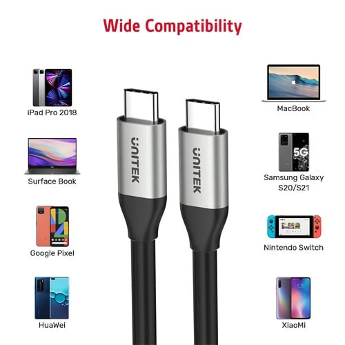 Unitek Type-C to Type-C (100W) 1Mt (4K 10Gbps Görüntü Aktarımı) Hızlı Şarj Kablosu (C14082ABK) Genel Özellikler