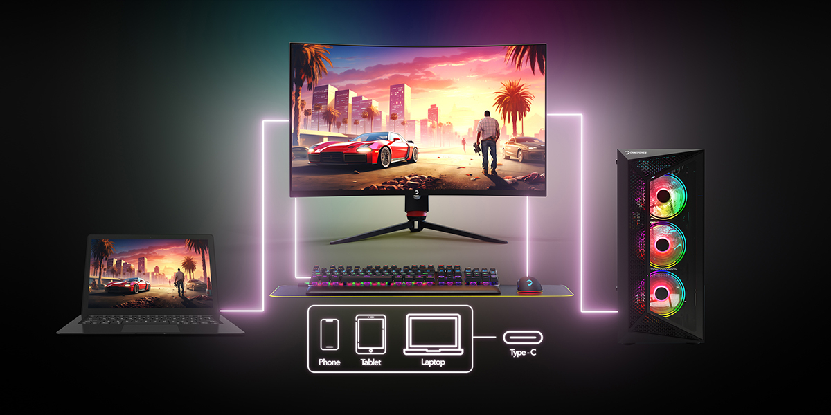 GamePower 32'' Vision V30 Curved 1000R RGB 240Hz 1ms 2K (QHD) , Kvm, Speaker, Type C Gaming Monitör (Sıfır Ölü Piksel Garantili)