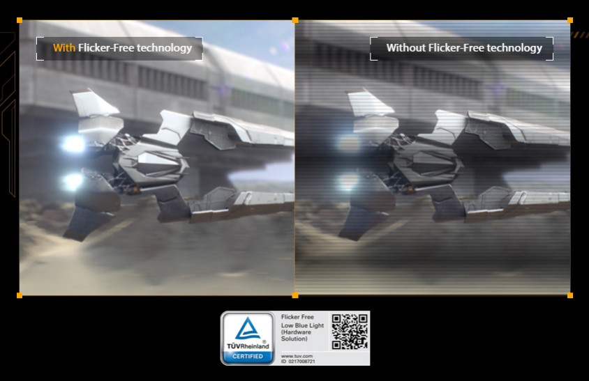 Flicker-Free teknolojisi uzun oyun maratonlarında göz yorgunluğunu minimuma indirmek ve rahatlık sağlamak için titreşimi azaltır.