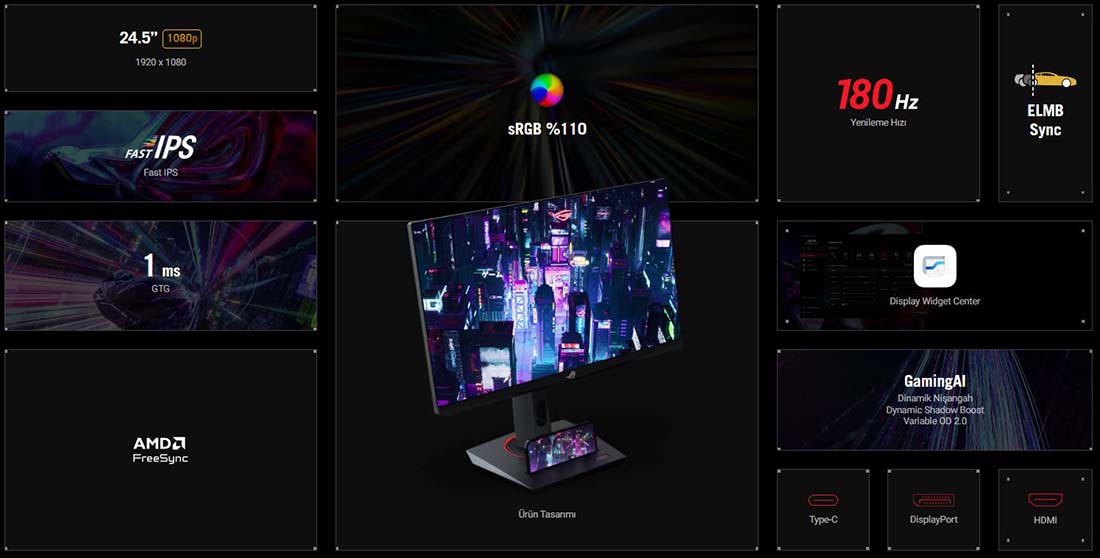 - 180 Hz yenileme hızı ve 1 ms tepki süresi ile akıcı oyun deneyimi.