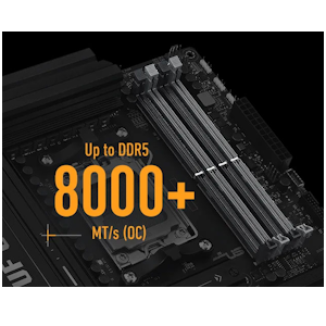 - DDR5 bellek teknolojisi (8000 MT/s’ye kadar) ve hız aşırtma desteği sayesinde yüksek performanslı bellek kullanımı sunar.