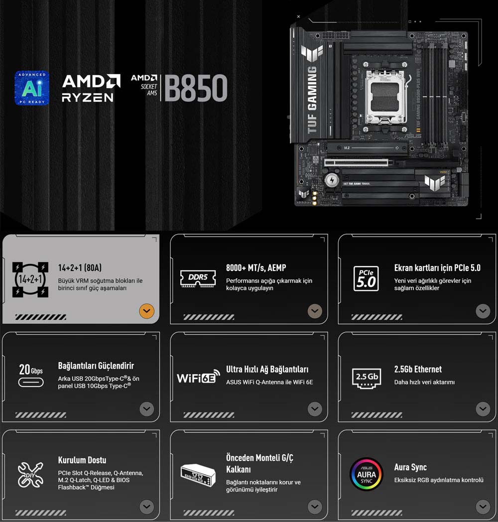 ASUS TUF GAMING B850M-PLUS WIFI7 AMD ANAKART