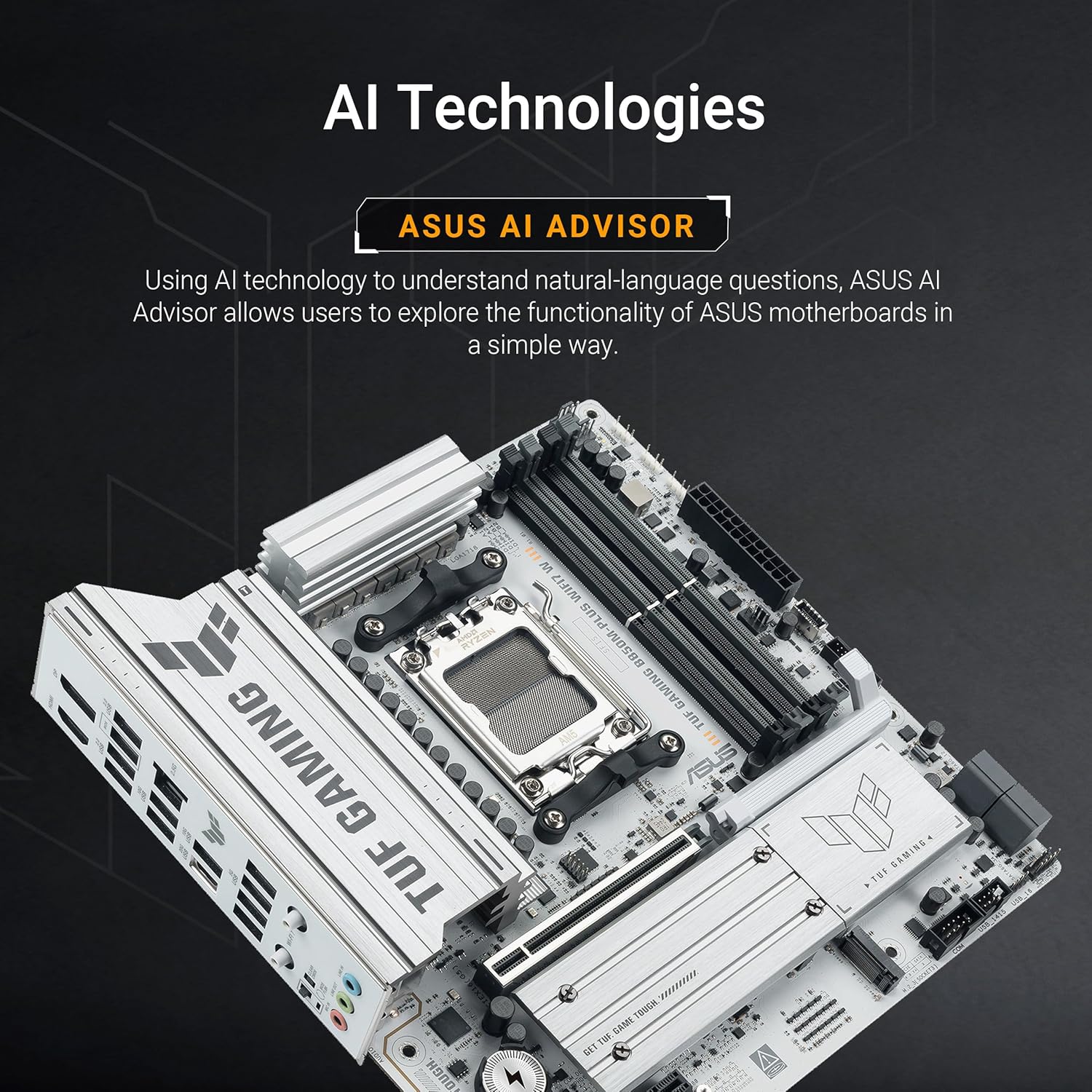 Asus TUF Gaming B850M-Plus WiFi, entegre yapay zeka desteğiyle bilgisayar kullanımını daha akıllı ve verimli bir hale getirir. ASUS AI Advisor teknolojisi, doğal dildeki sorularınıza yanıt verebilen yenilikçi bir sistem sunar. Bu özellik, kullanıcıların anakart işlevlerini kolayca keşfetmesine ve sistem kurulumunu hızla tamamlamasına olanak tanır. Yapay zeka destekli bu anakart, gelişmiş kişiselleştirme ve kullanım kolaylığı ile öne çıkar.