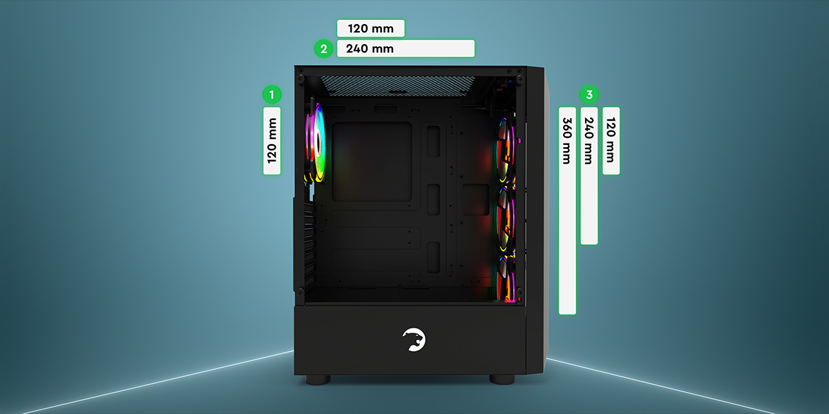 Geniş radyatör desteği ile yüksek performanslı oyunlar sırasında bile bilgisayarınızın serin kalmasına olanak sağlar..