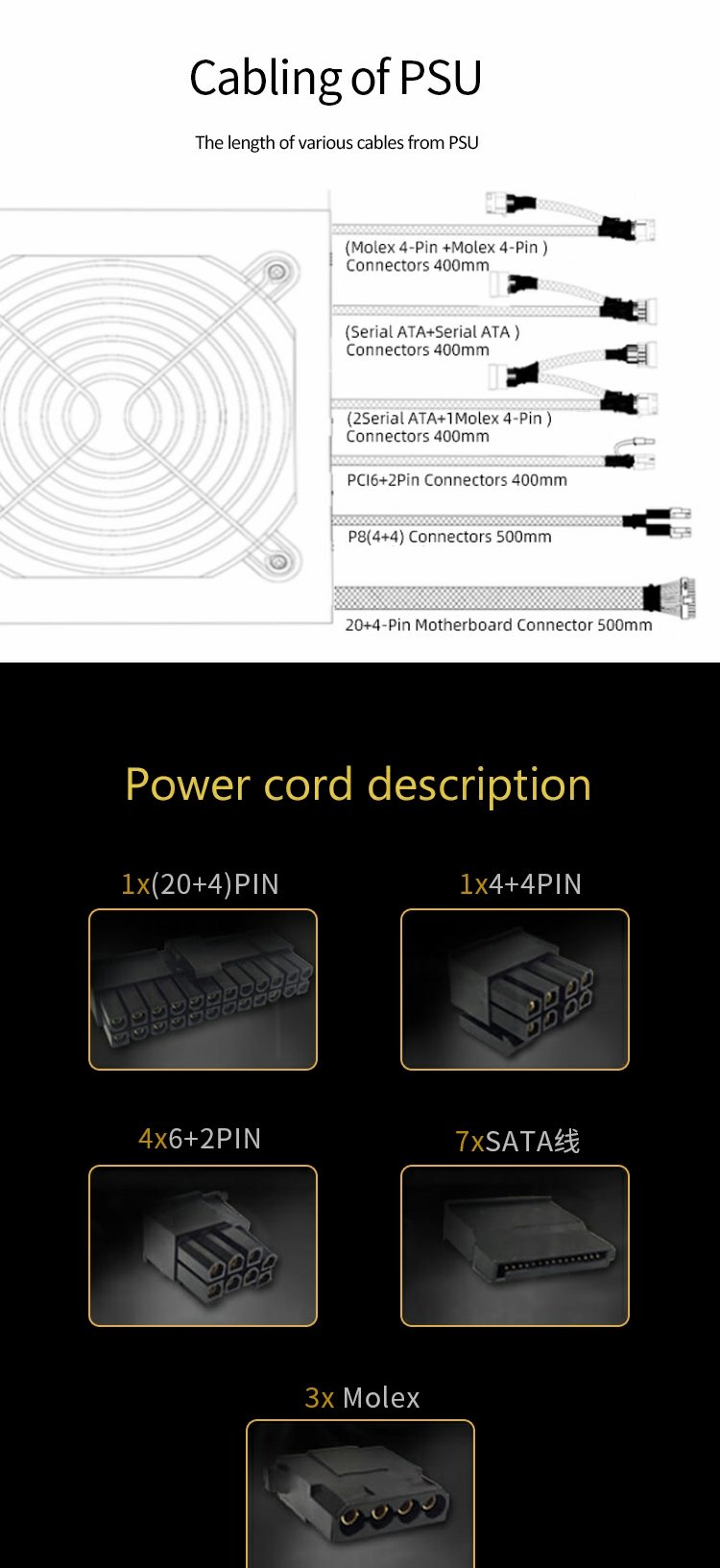 | Güç Çıkışları | 20+4Pin + 1x4+4Pin + 4x6+2Pin + 7xSata + 3xMolex |