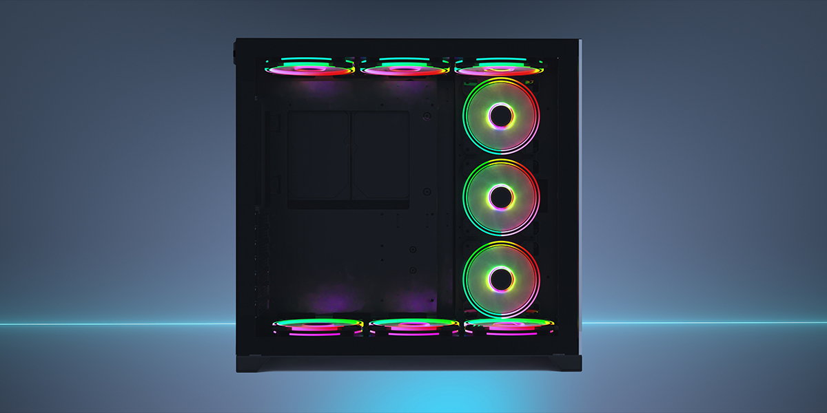 6 adet A-RGB Infinity PWM fan’a sahip WARCRY Evo ile serinlik ve şıklık arasındaki dengeyi yakala.