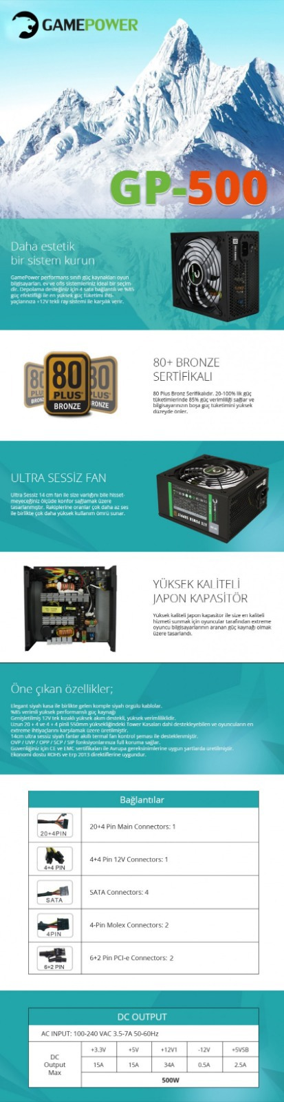 GAMEPOWER GP-500 14CM 80+(BRONZ) 500W PSU