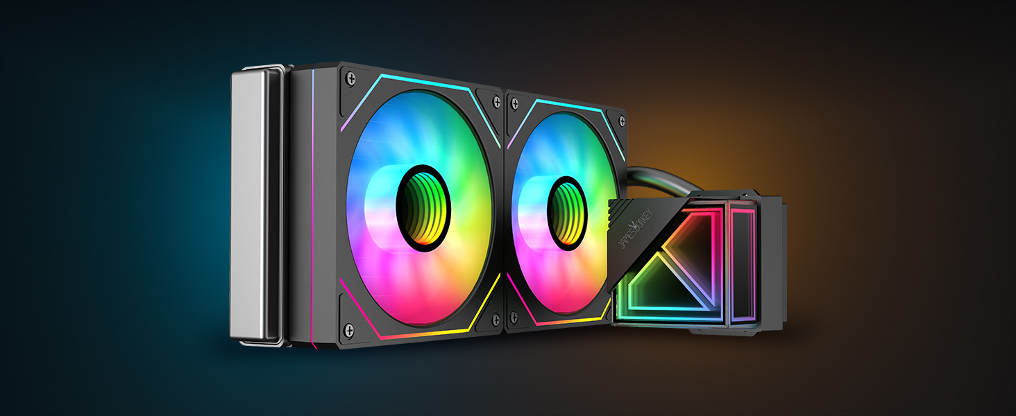 2x120mm PWM ARGB fana sahip James Donkey Lugis JDC240 ARGB 240mm, etkileyici RGB tasarımın yanında optimum soğutma sunar.