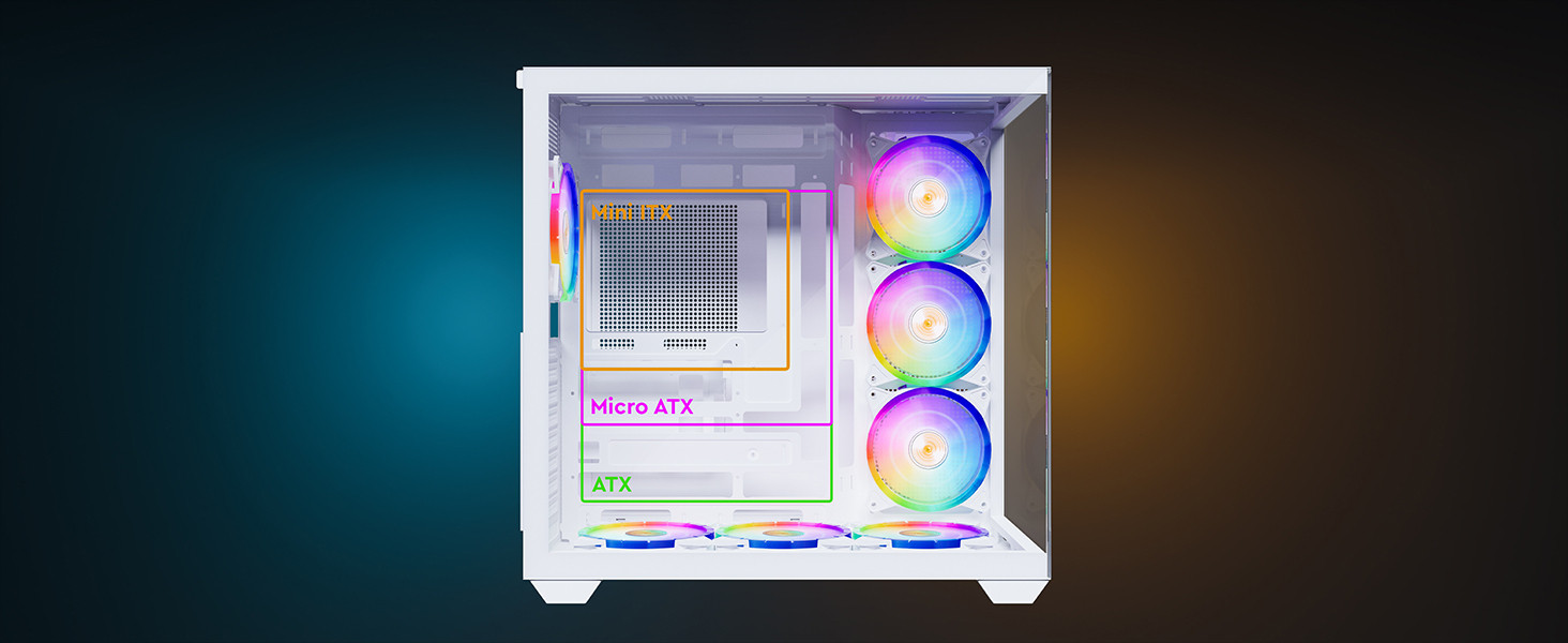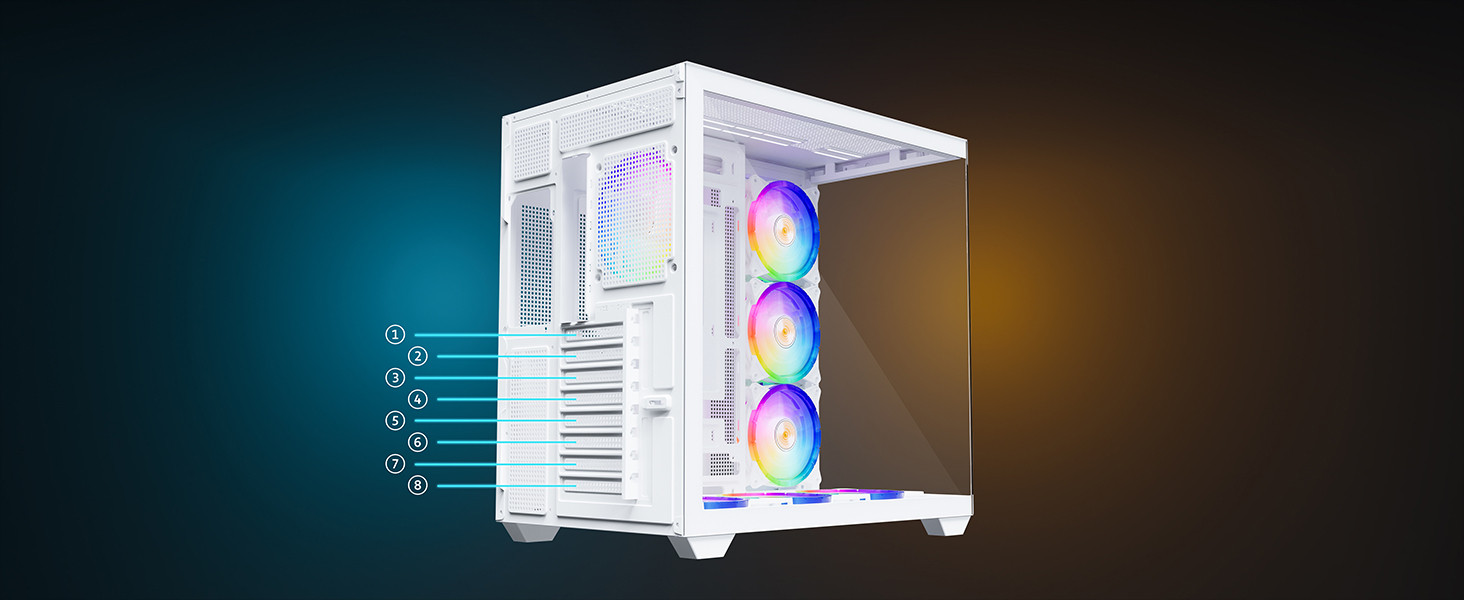 Dahili 7 adet A-RGB fan sayesinde Stark S801, bileşenler arasında dengeli bir hava sirkülasyonu oluşturarak verimli ve stabil soğutma performansı sunar.