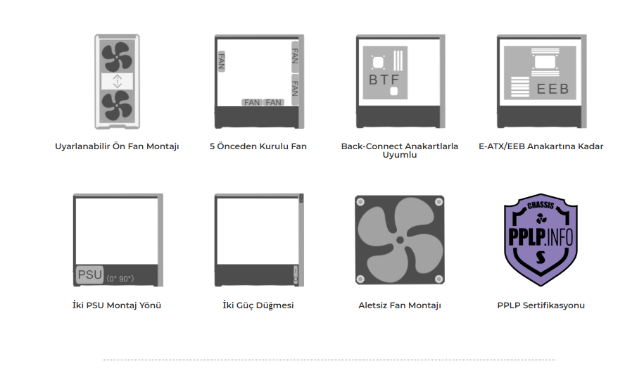 Arka bağlantı anakart desteği: ATX, Micro-ATX.