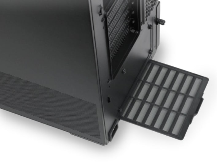 LANCOOL 217, farklı kullanımlara uygun iki güç düğmesine sahiptir. Üstteki güç düğmesine, kılıf yerdeyken kolayca erişilebilir, ön düğme ise kılıf masada olduğunda daha iyi çalışır.Hem ön hem de alt kısımda çıkarılabilir manyetik toz filtreleri yer alıyor, bu sayede toz birikmesi etkili bir şekilde önleniyor ve donanım ömrü uzatılıyor.