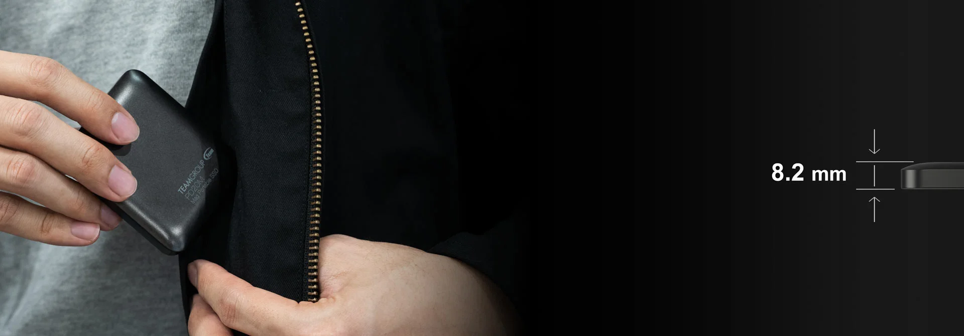 Titan grisi TEAMGROUP PD20M Manyetik Taşınabilir SSD zarif bir estetik sunar. Sadece 0,82 cm kalınlığında, iPhone 15'in toplam kalınlığından daha ince ve şık yuvarlak tasarımıyla en iyi dokunsal deneyimi sunar. Hafif ve kompakt tasarımı, herhangi bir yük olmadan hareket halindeyken taşımayı kolaylaştırır.