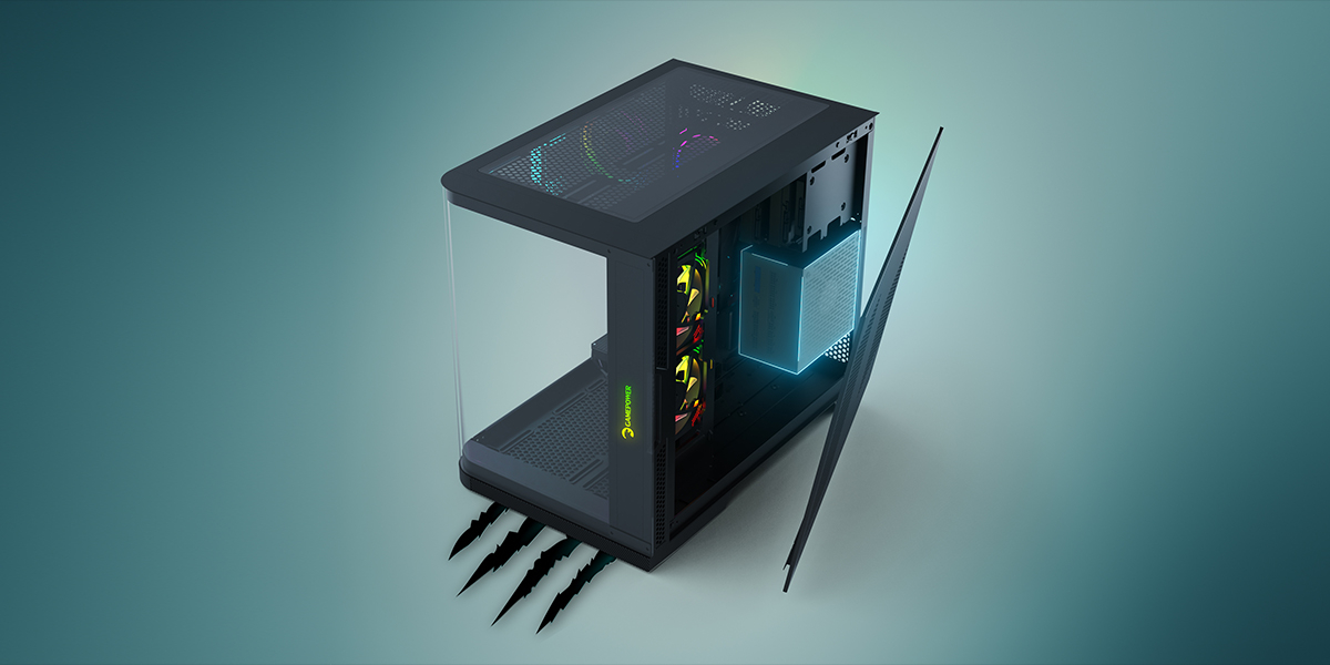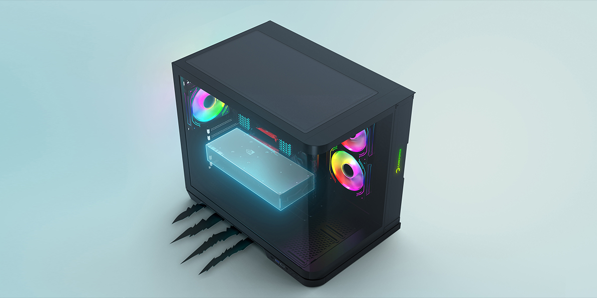 Warcry Vertex oyuncu bilgisayarı kasası, anakart tepsisinin arkasındaki geniş alanıyla kablo yönetimine öncelik veriyor. Gizli kablo yönlendirmesine olanak tanır, iç estetiği iyileştirir ve hava akışını optimize eder.
